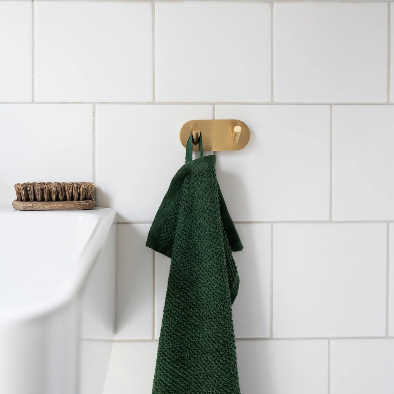 The bathroom hook has a solid brass core that never rusts and it comes with a 10 year warranty. You get an extra elegant feeling from the hidden bracket. Refresh your bathroom by decorating it with matching products in brushed brass from the timeless HOME series.